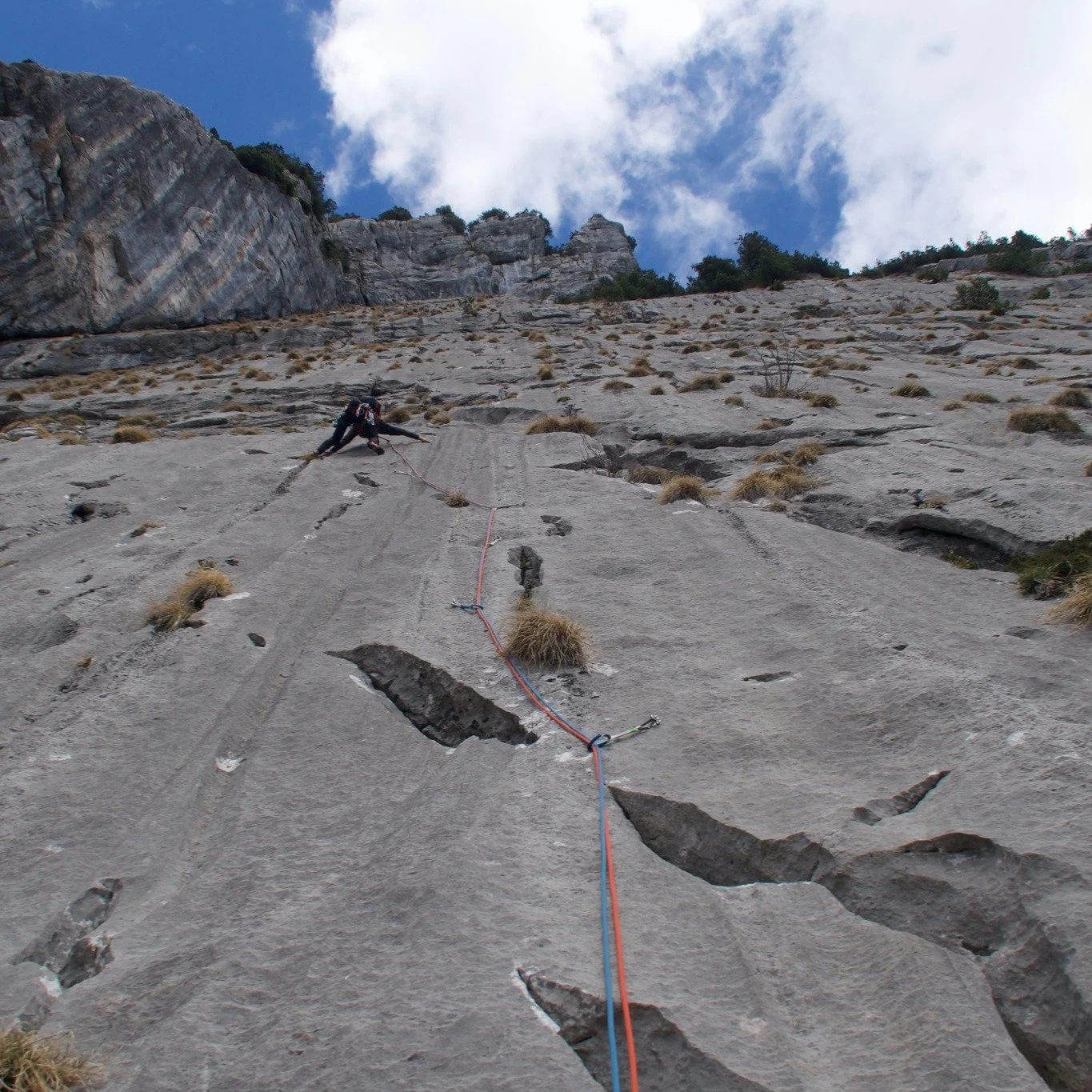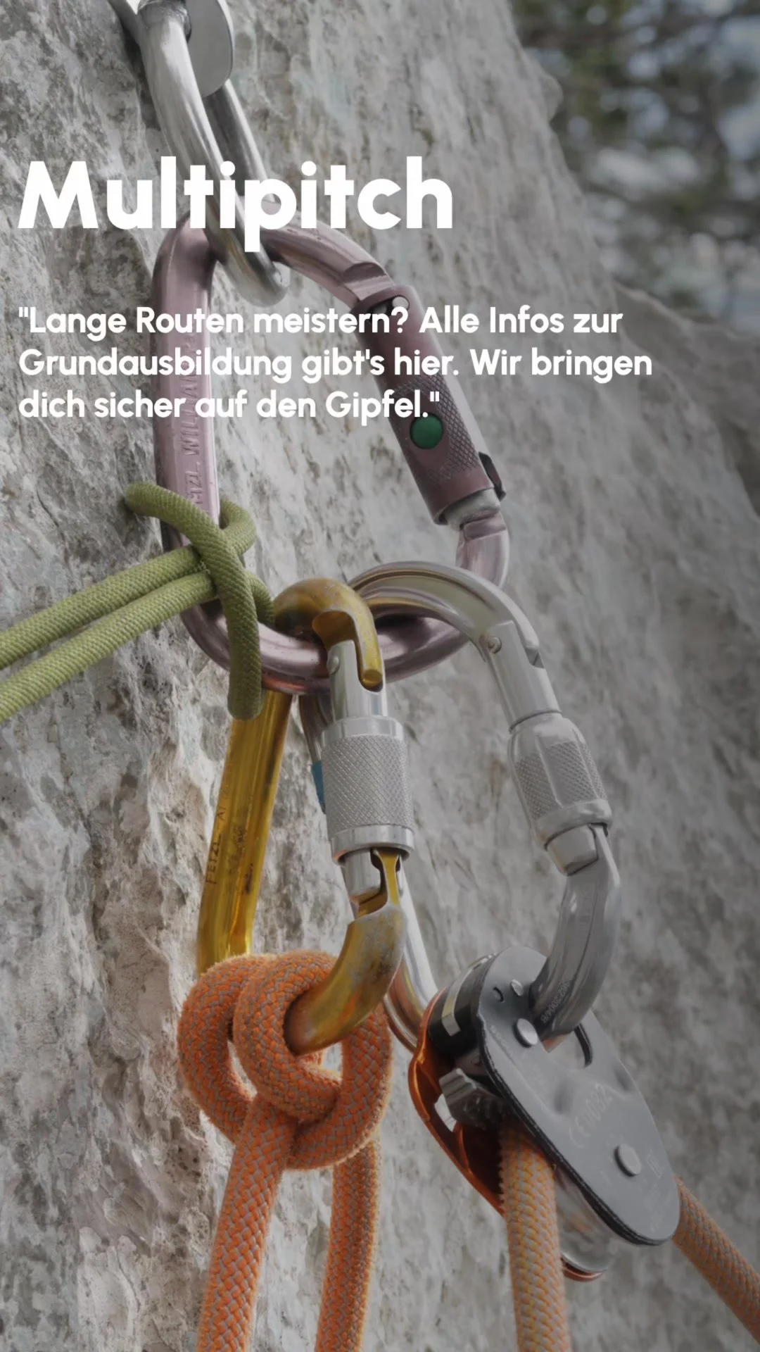 Mehrseillängen und alpines Klettern: Höheres Risiko durch exponierte Positionen, längere Touren und potenziell unsichere Sicherungspunkte.